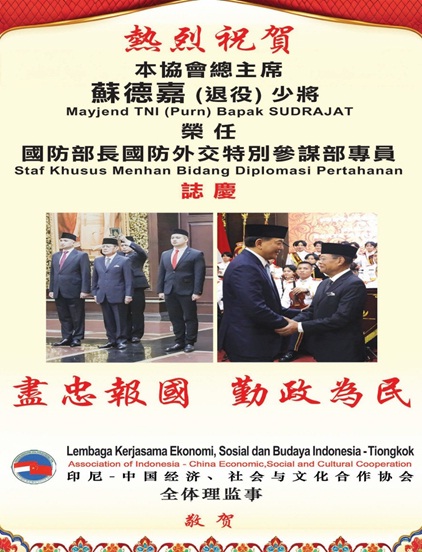 Susunan Dewan Pengurus Pusat Lembaga Kerjasama Ekonomi, Sosial dan Budaya Indonesia – Tiongkok Periode 2017 – 2022