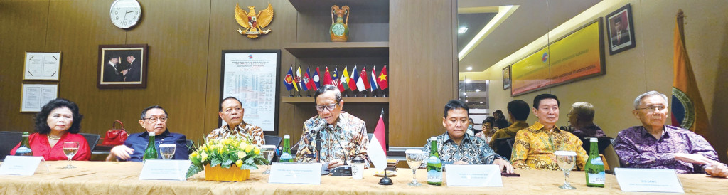 Menkopolhukam Mahfud MD (tengah) dan Wakil Sekjen LIT Kov Jokowidjaja (kanan)