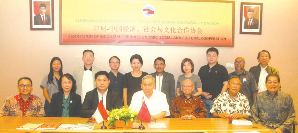 Presiden Yang Yong (kedua dari kiri) memberikan suvenir kepada Sekjen LIT dan Presiden Shangbao Susanto Sjahir