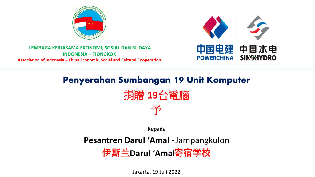 19 komputer yang disumbangkan oleh Lembaga Indonesia - Tiongkok bersama PowerChina-SINOHYDRO